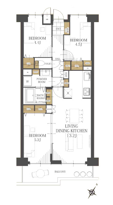 専有面積:66.71 m² バルコニー:13.9m² 2F 3LDK
