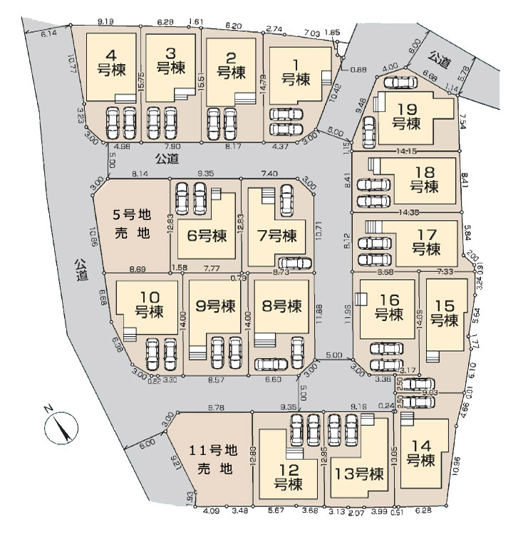 全19区画の大型開発分譲地。11号地は、敷地約36.3坪。角地で開放感のある立地です。建物参考プランもございます。条件なしの売地としてもご検討いただけます。