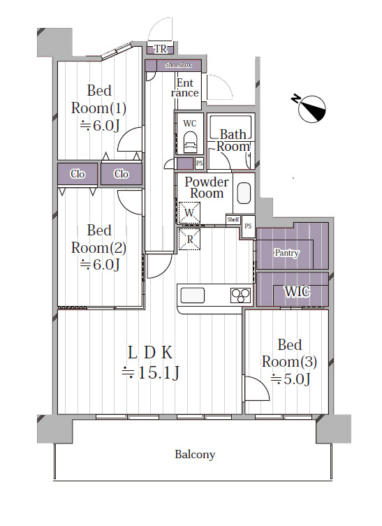 専有面積:73.57 m² バルコニー:11.7m² 5F 3LDK