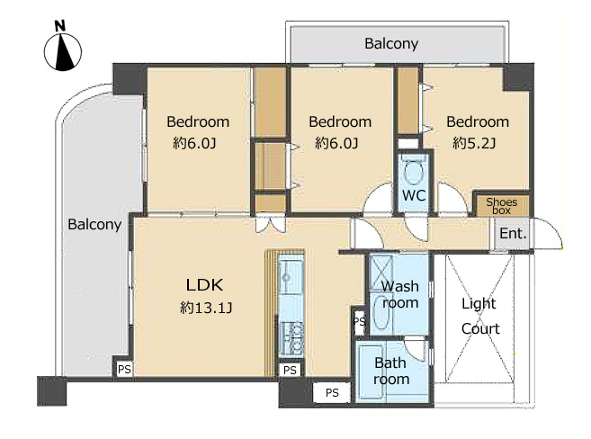 専有面積:68.4 m² バルコニー:5.97m² 2F 3LDK