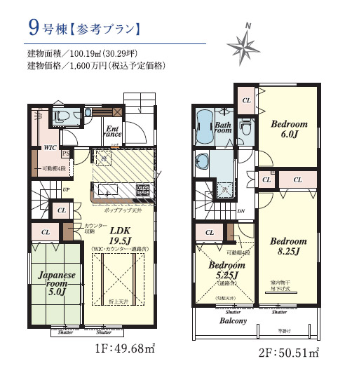 6月下旬までの期間限定の売地販売。全区画120㎡超のゆとりある分譲地。全10区画。8号地は、約36.3坪。奥まった落ちる気ある住環境です。条件なしの売地のため、お好きなハウスメーカーで建築していただけます。掲載の建物プランの場合、建物価格1600万円になります。