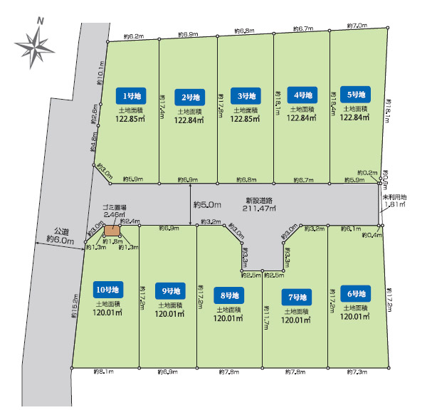 7月下旬までの期間限定の売地販売。全区画120㎡超のゆとりある分譲地。全10区画。10号地は、約36.3坪。角地で開放感のある立地です。条件なしの売地のため、お好きなハウスメーカーで建築していただけます。掲載の建物プランの場合、建物価格1600万円になります。
