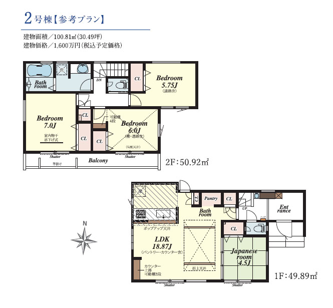 5月下旬までの期間限定の売地販売。全区画120㎡超のゆとりある分譲地。全5区画。3号地は、旗竿型の区画ですが、南側にお庭やカースペースを配置して、陽当たり良好建物を計画できます。条件なしの売地のため、お好きなハウスメーカーで建築していただけます。掲載の建物プランの場合、建物価格1600万円になります。