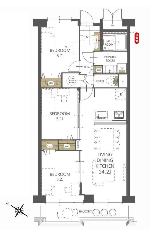 専有面積:62.71 m² バルコニー:7.7m² 3F 3LDK