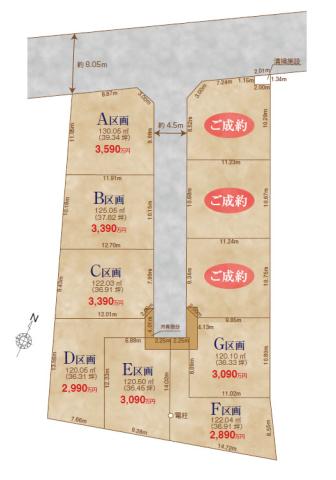 条件なしの売地 全10区画。G区画は、敷地約36.3坪。通りから入った立地のため落ち着きある住環境です。条件なしの売地のため、お好きなハウスメーカーで建築していただけます。建物プラン作成いたします。お気軽にお問い合わせください。