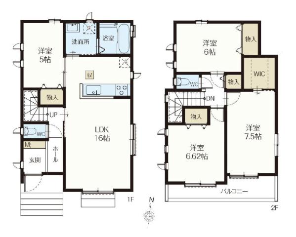• 南向きで陽当たり良好。目の前が落合川の遊歩道ため、とても開放感がある立地です。A号棟は、延床面積98.33㎡。1Fに洋室のある4LDKの間取り。2Fの居室はすべて6帖以上ありゆとりがあります。省エネ性能ZEH水準。耐震等級「3」の地震に強い家です。